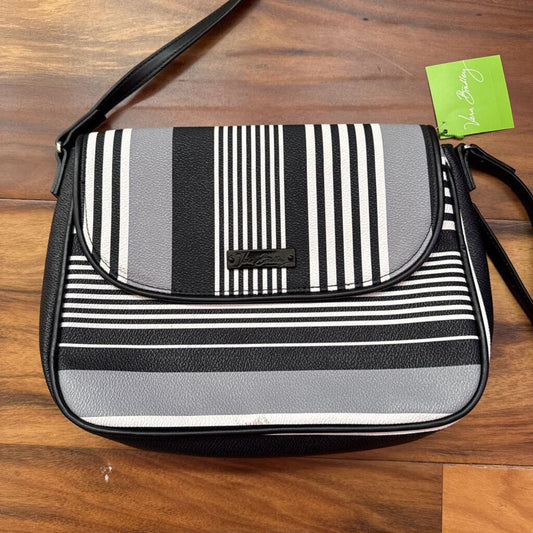 VERA BRADLEY,NWT VB STRIPE CROSSBODY HANDBAG,GRY BLK