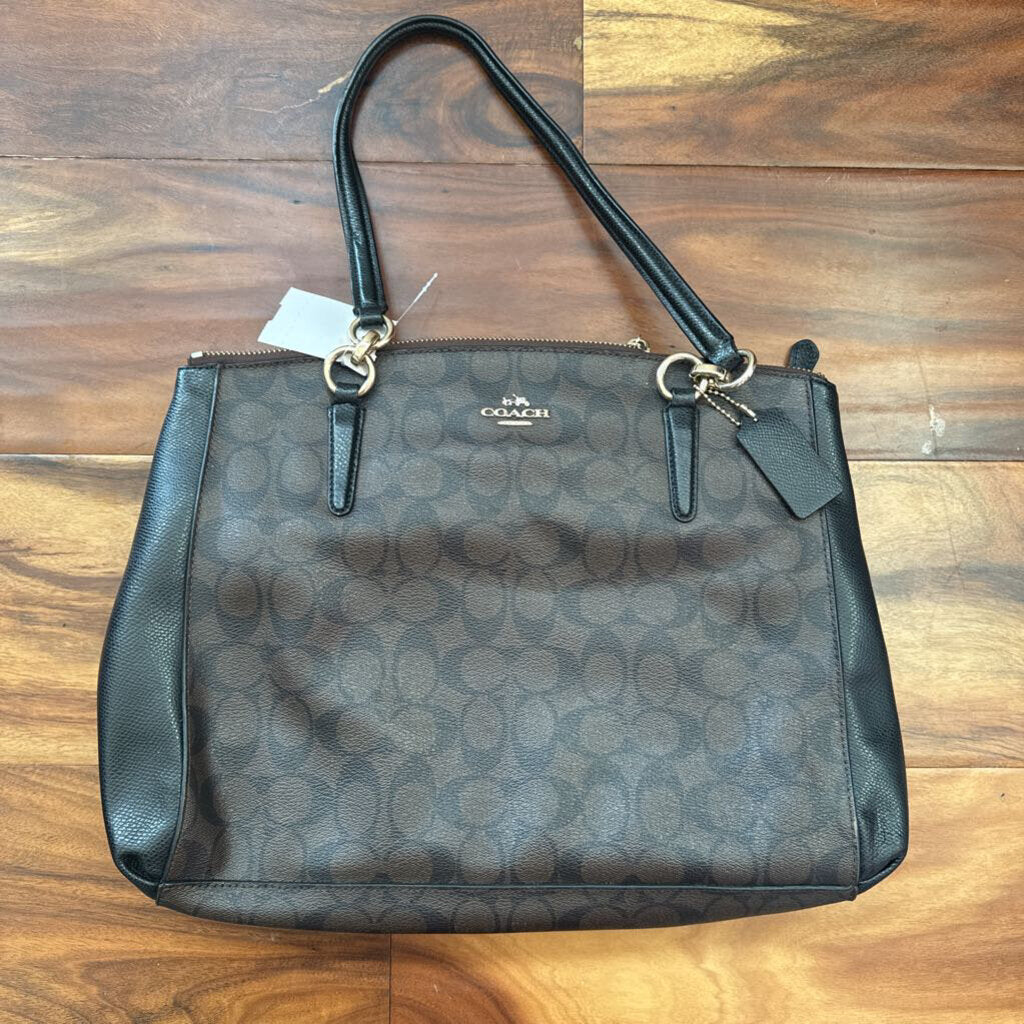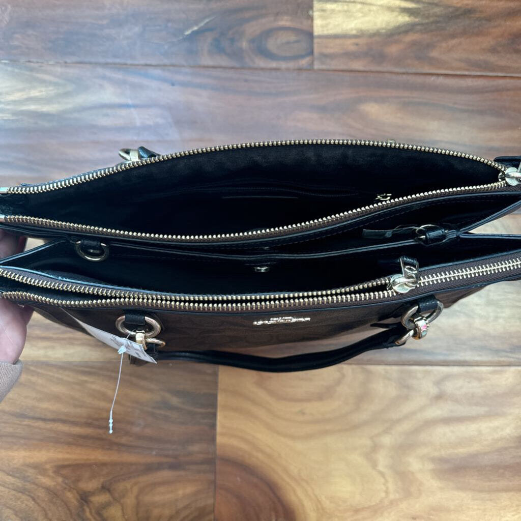 COACH,LEATHER SHOULDER BAG ,BLK/BRN