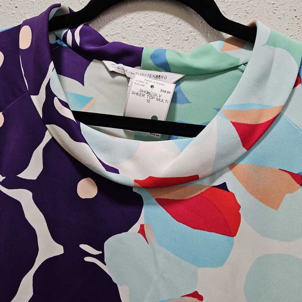DIANE VON FURSTENBURG,SHORTSLV SHEER TOP,MULTI,10