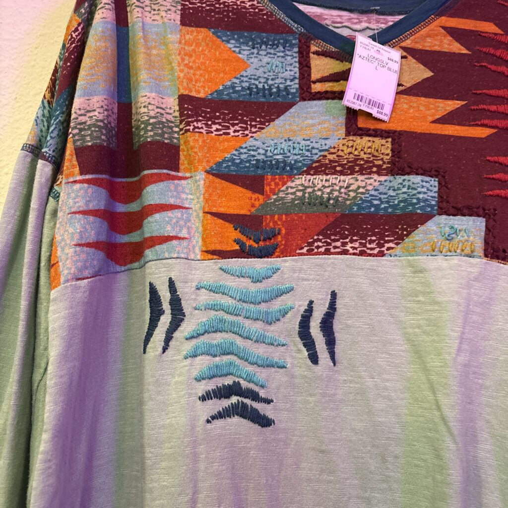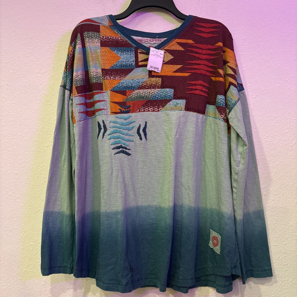 DOUBLE D RANCH,LONGSLV "AZTEC" TOP,BLUE,L