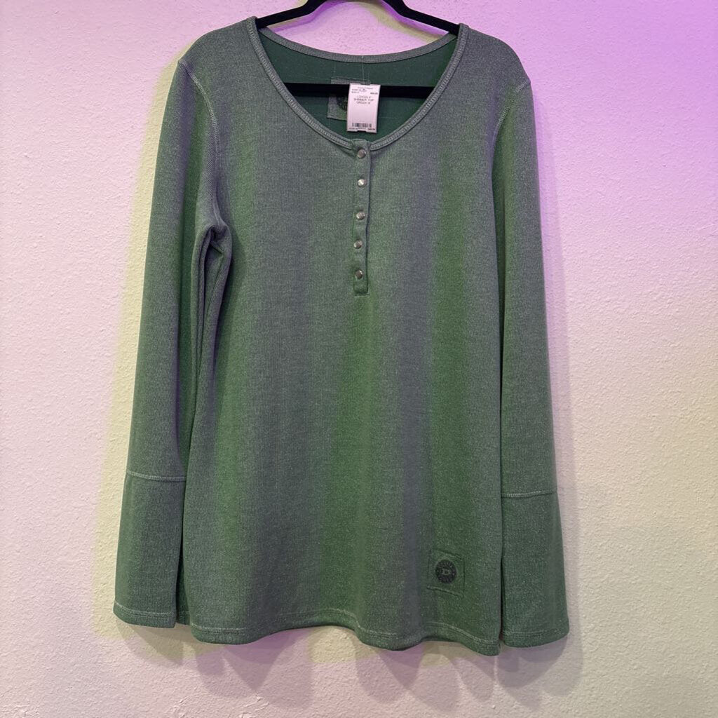 DOUBLE D RANCH,LONGSLV SHIMMER TOP,GREEN,1X