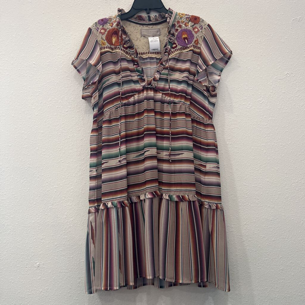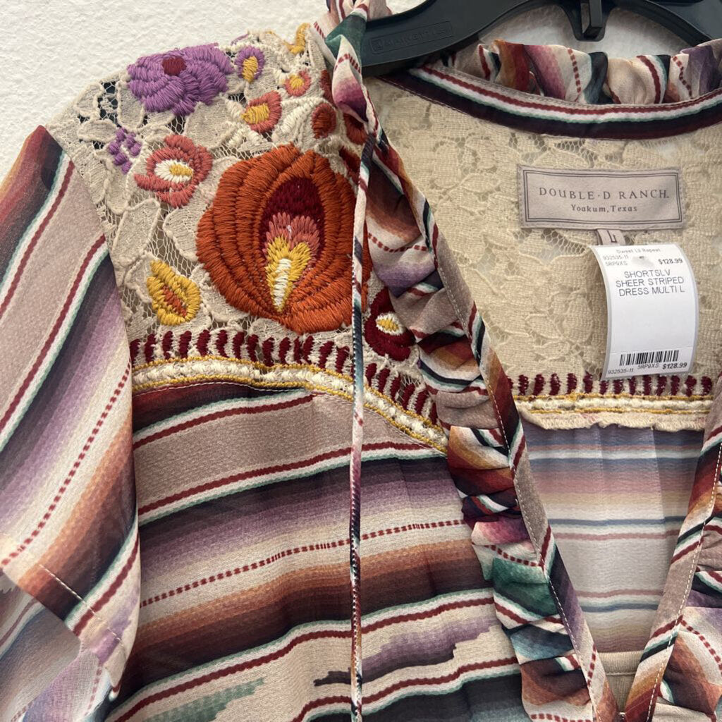 DOUBLE D RANCH,SHORTSLV SHEER STRIPED DRESS,MULTI,L