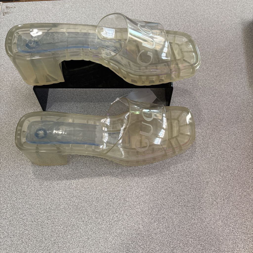 GUCCI,AUTHENTIC GG CLEAR BLOCK HEEL SANDAL ,BLK ,40