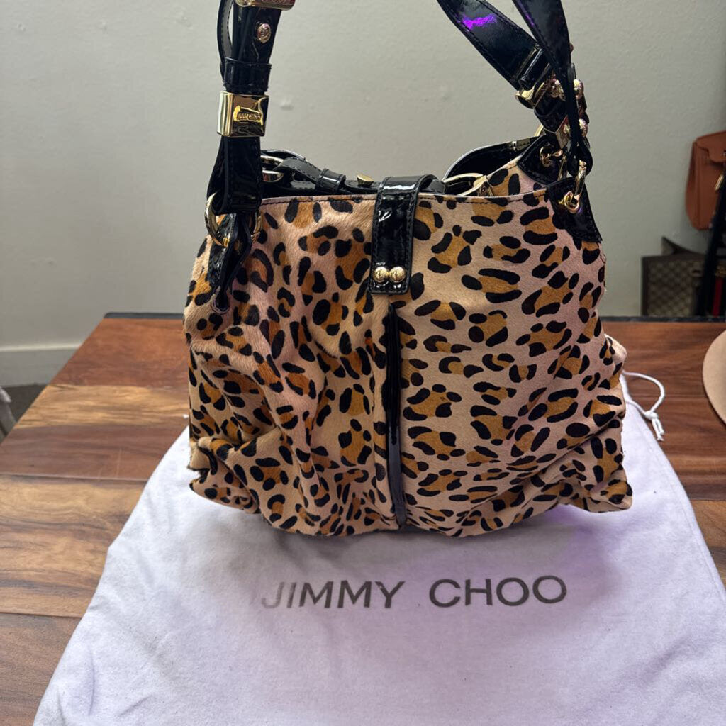 JIMMY CHOO,AUTHENTIC PRINT CALFHAIR & LEATHER HANDBAG,LEOPARD