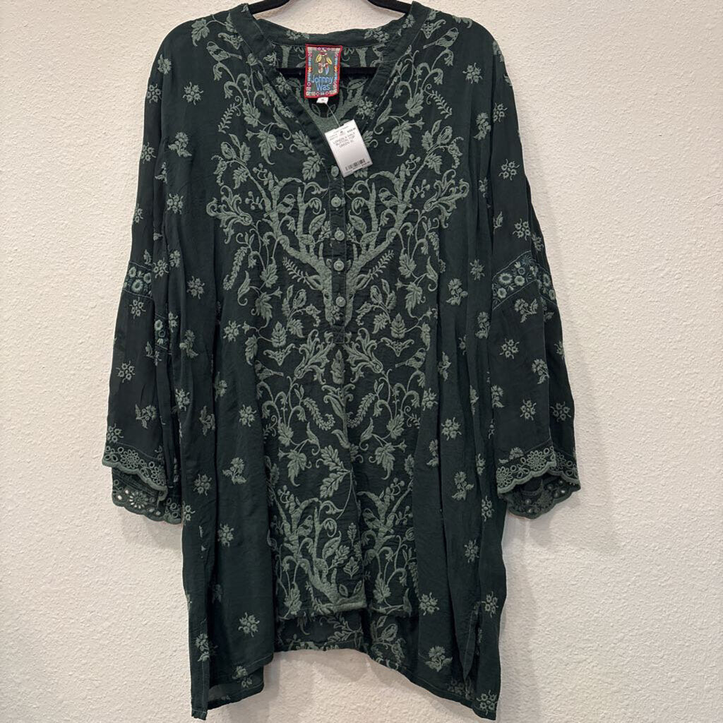 JOHNNY WAS,LONGSLV HALF BUTTON TOP,GREEN,XL