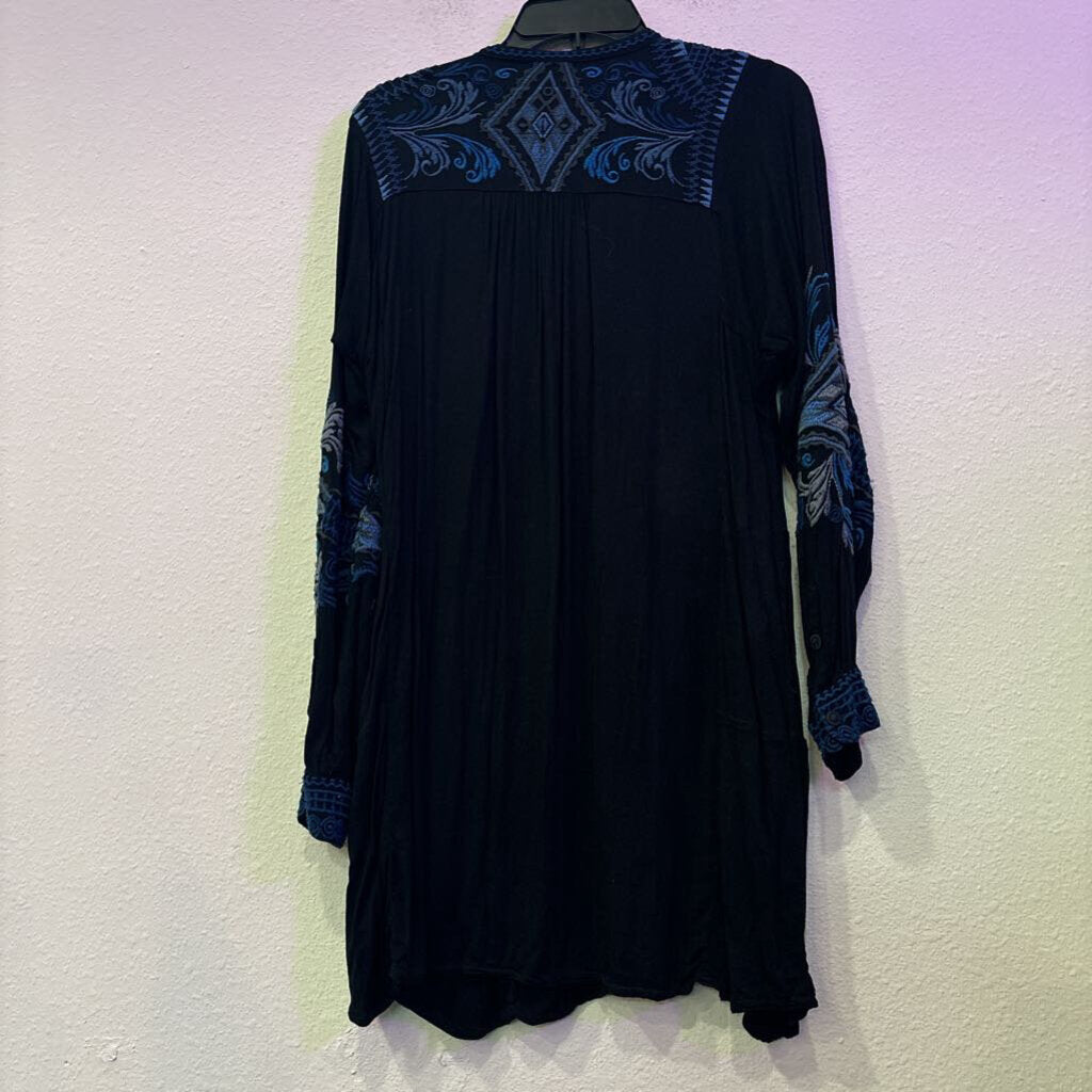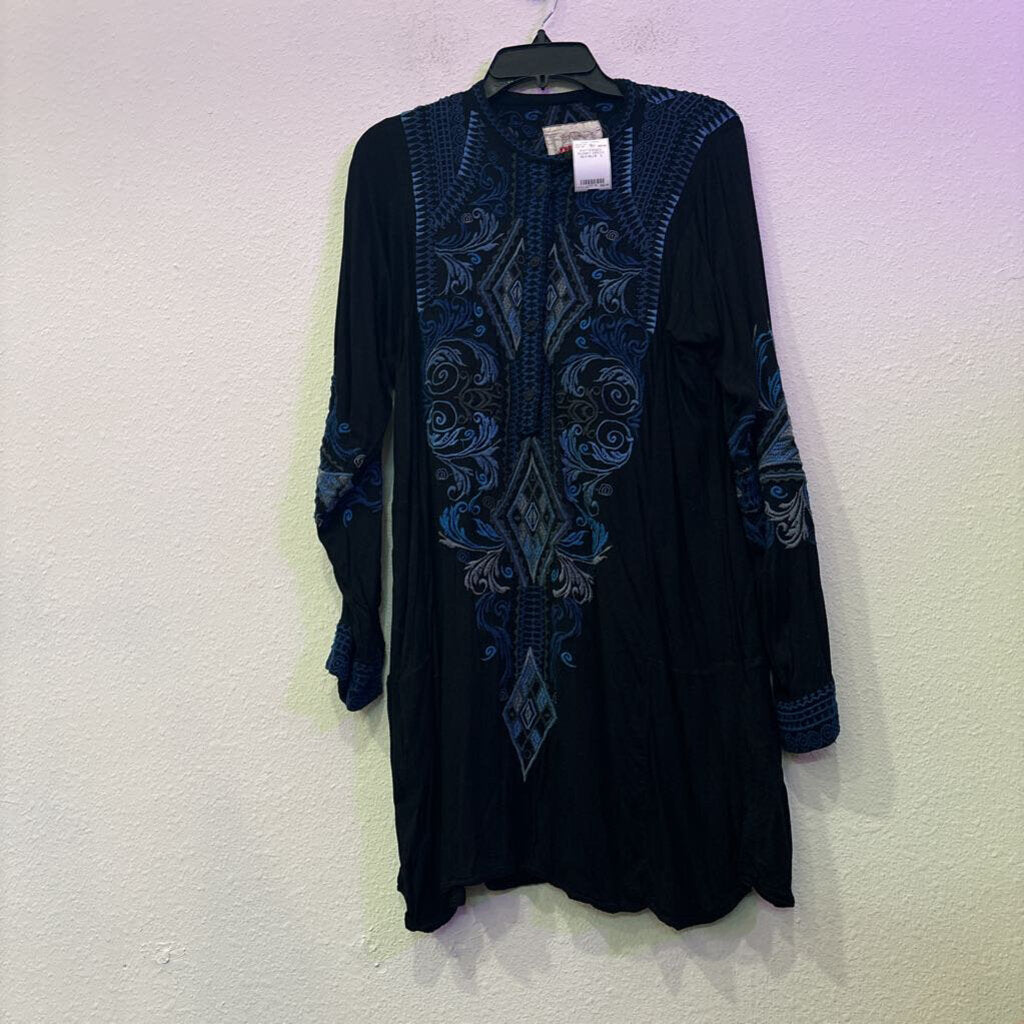 JOHNNY WAS,PATTERNED FLOWY DRESS ,BLK/BLUE ,S