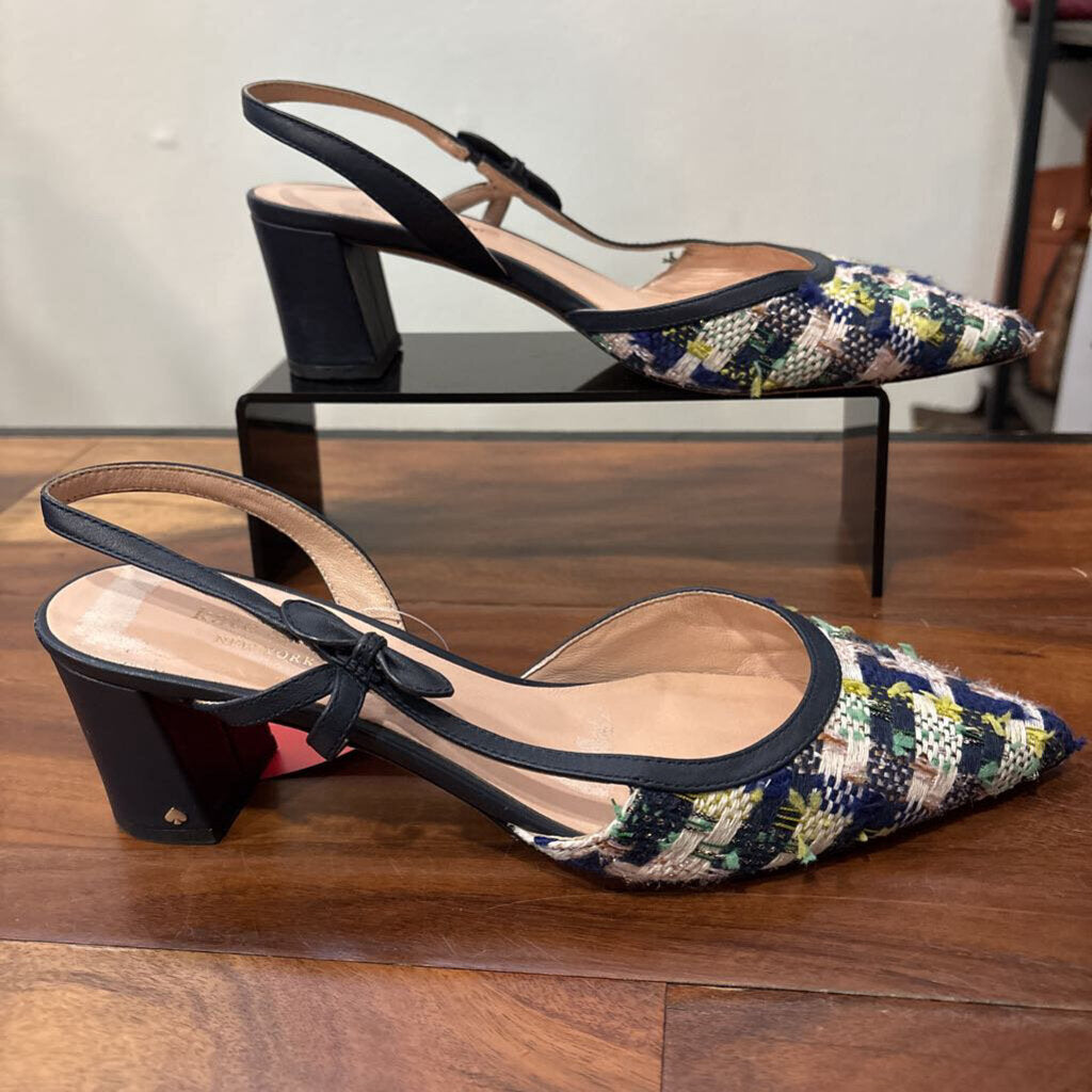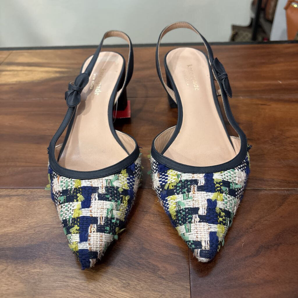 KATE SPADE,TWEED SLING BACK HEEL ,BLUE WHITE GREEN,7.5