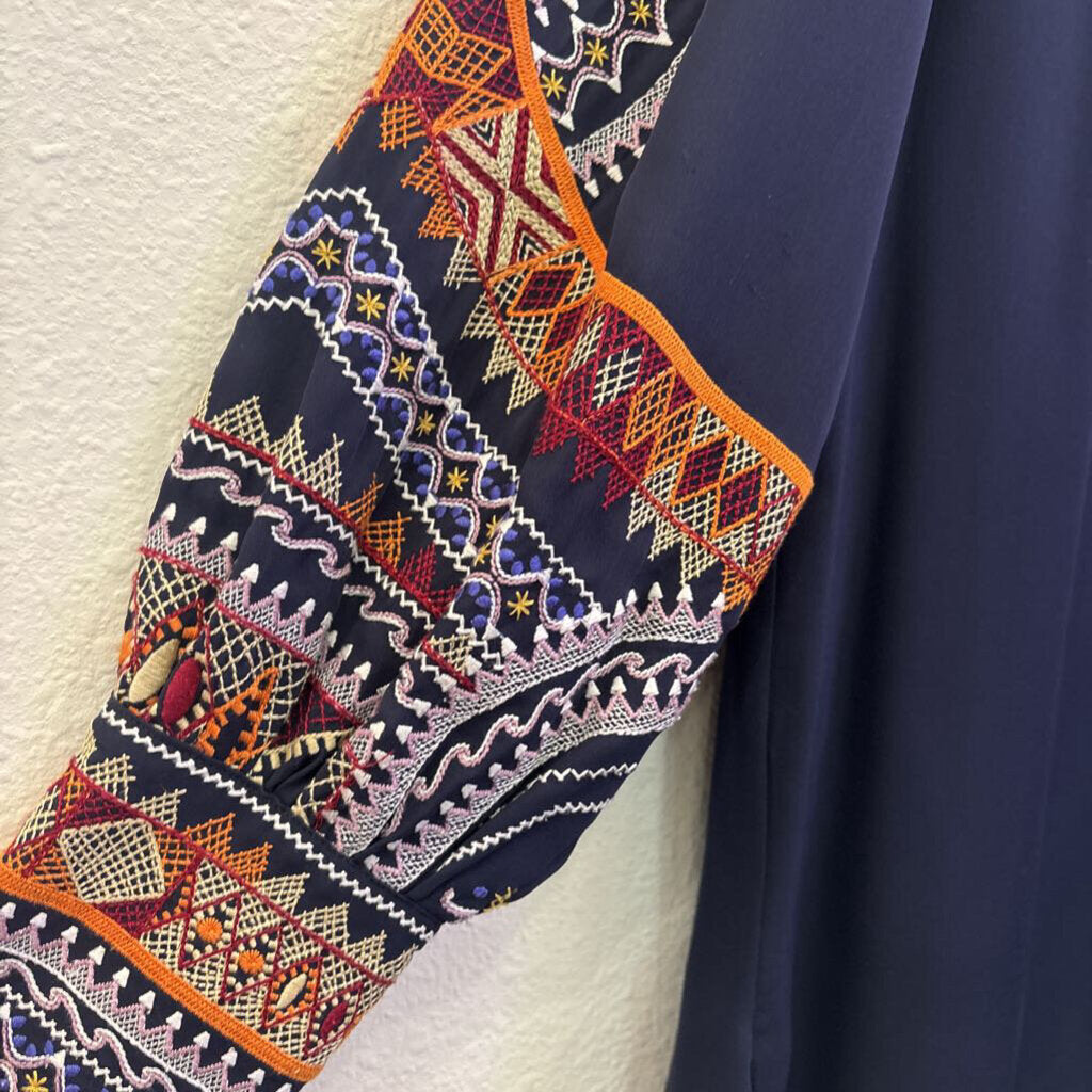 KOBI HALPERIN,PATTERNED SLVE SHEER TOP ,NVY/MULTI,L