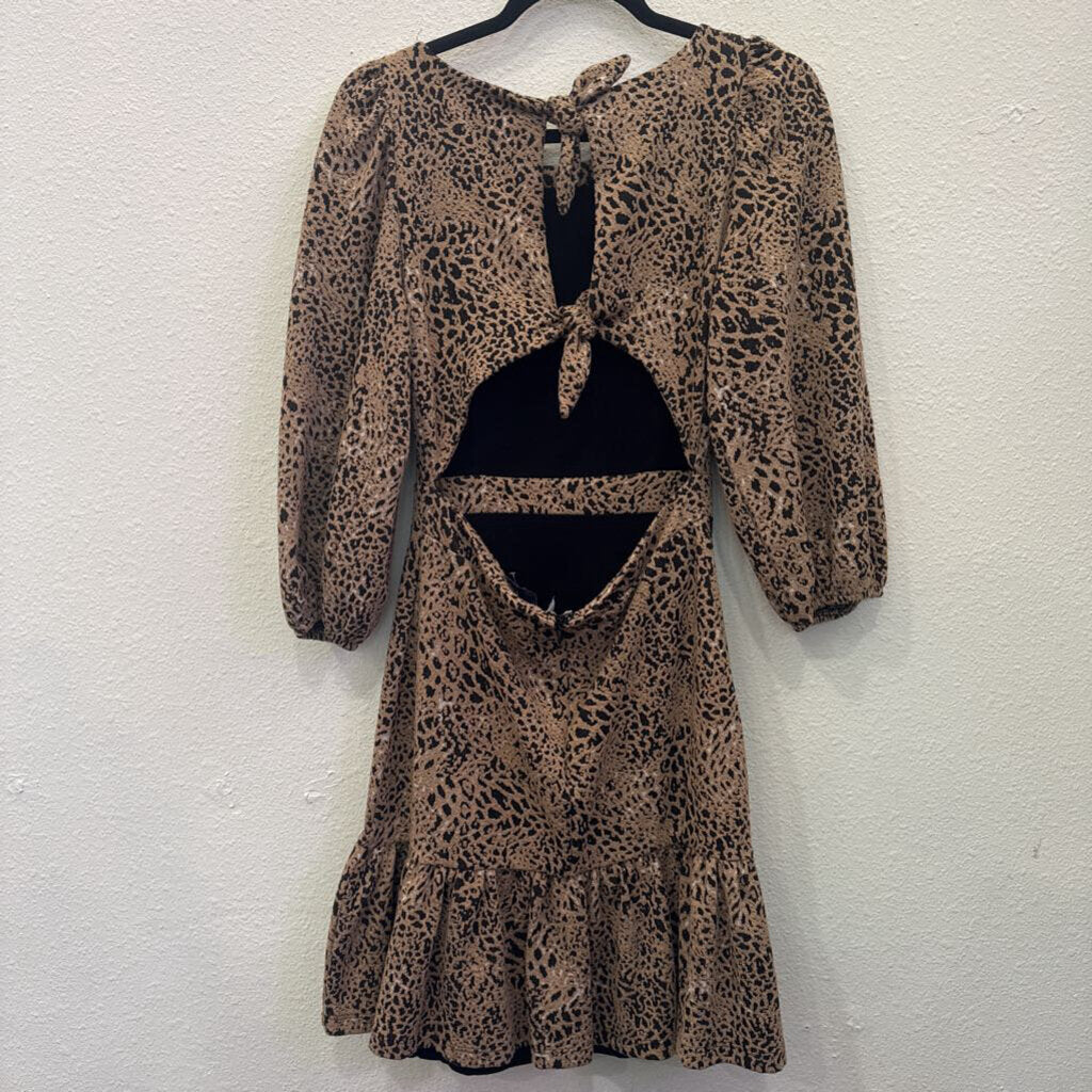 MAEVE (ANTHRO),LEOPARD BOW BACK RUFFLE DRESS ,TAN BLK ,6