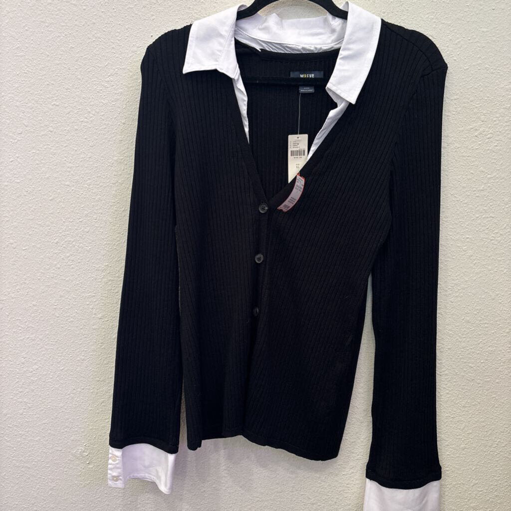 MAEVE (ANTHRO),LONGSLV RIBBED COLLAR TOP,BLK ,L