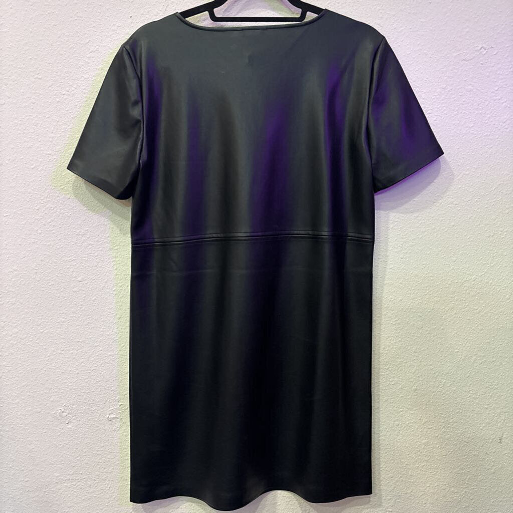 NWT FAUX LEATHER DRESS ,BLK ,S