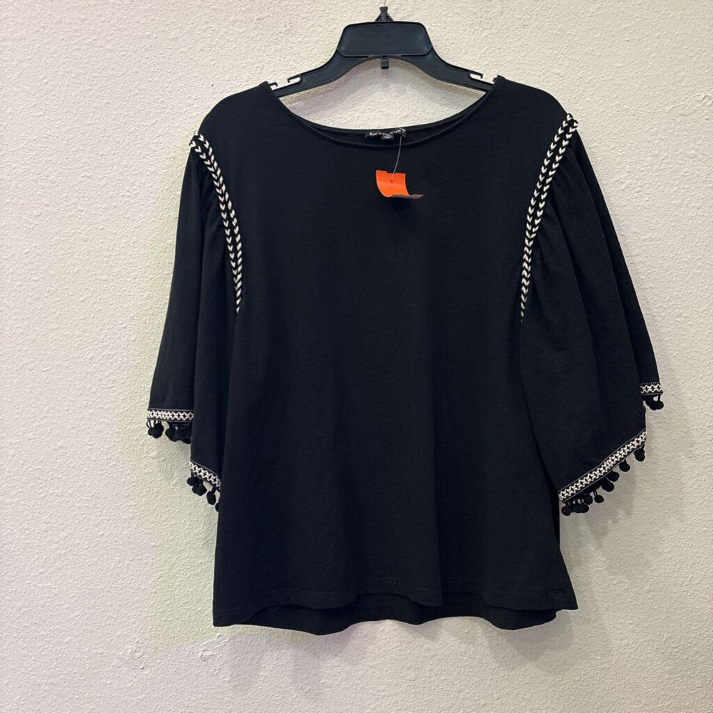 SEE AND BE SEEN,3/4SLV TOP,BLK,1X
