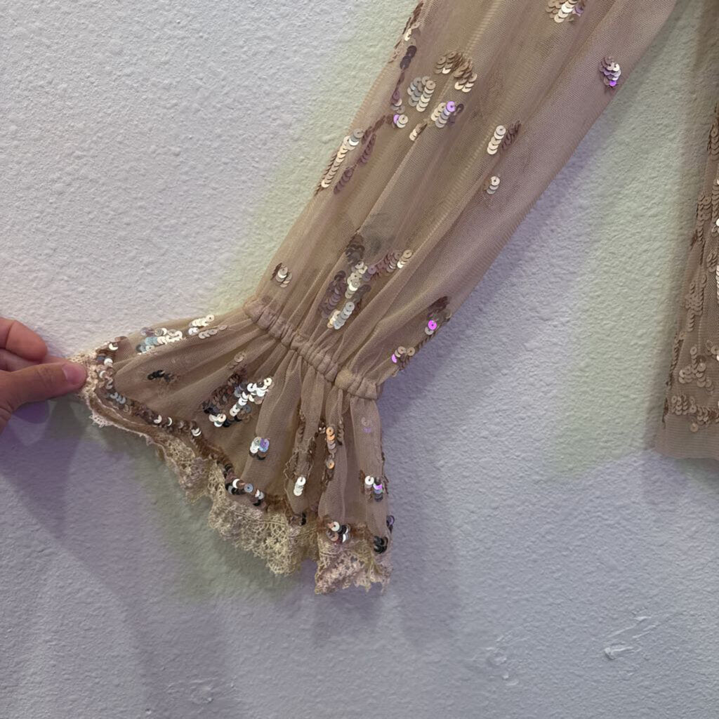 SHEER SEQ TOP ,ROSE GOLD ,L