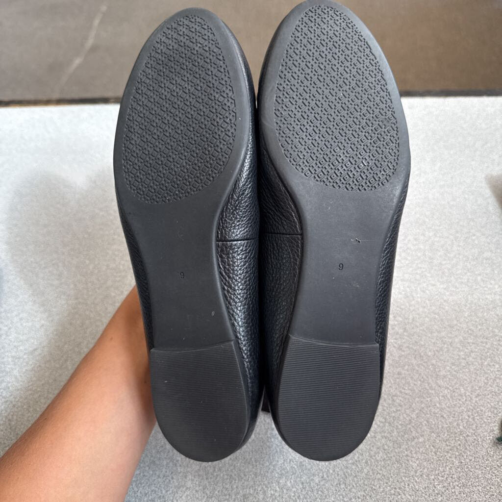 TORY BURCH,LEATHER BALLET FLAT ,BLK/GOLD,9
