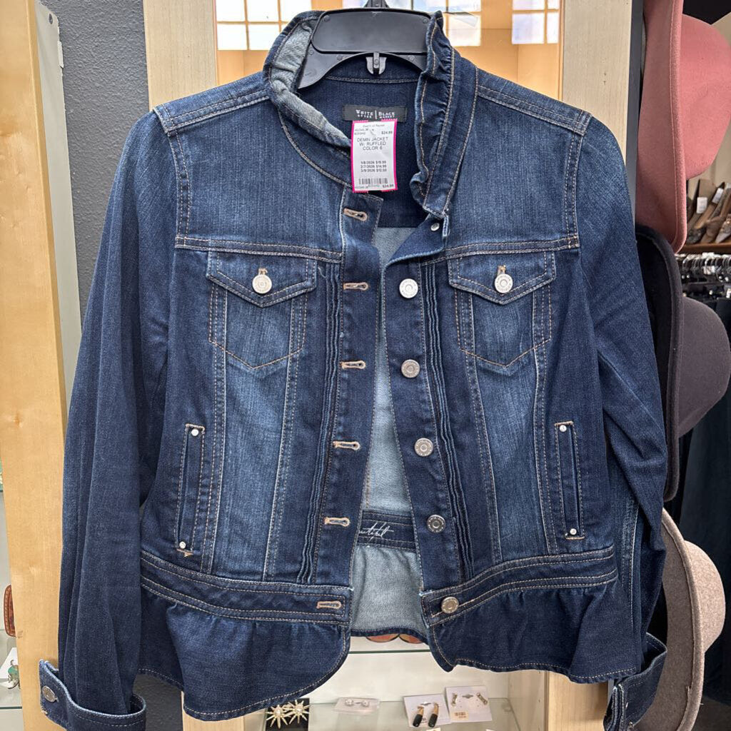 WHITE HOUSE BLACK MARKET,DEMIN JACKET W/ RUFFLED COLOR, 6